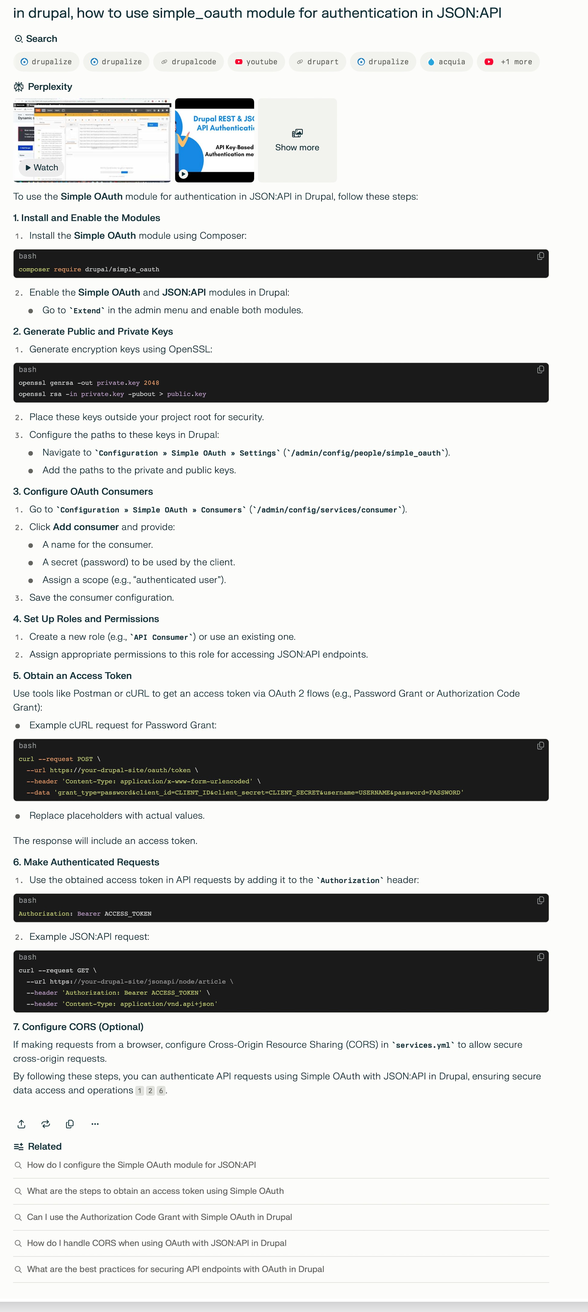 - Simple OAuth (OAuth2) & OpenID Connect: enables secure third-party authentication and authorization through industry-standard OAuth2 and OpenID Connect protocols. It allows users to log into a Drupal site using credentials from external providers (like Google or Facebook) while giving developers fine-grained control over API access permissions without sharing passwords directly.