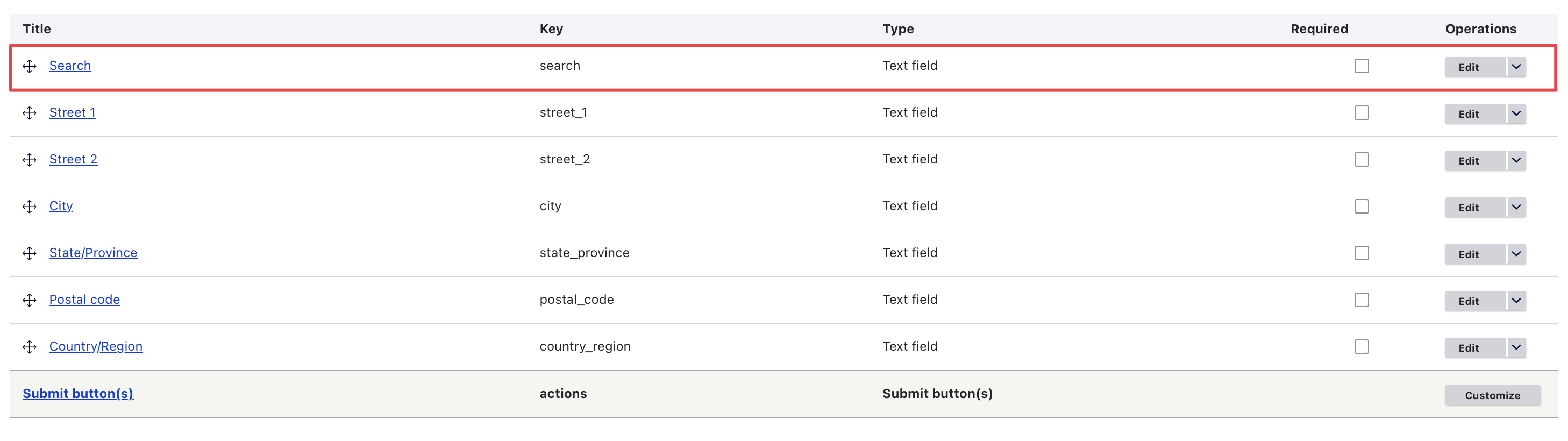 - Create any field that will later be replaced with the PlaceAutocompleteElement, here I’ll create a search field to showcase, see screenshot