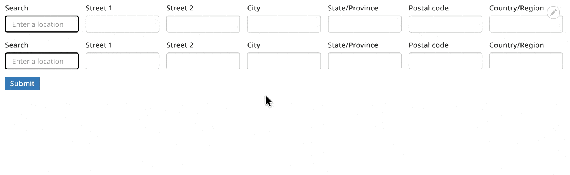 trying out entering address in the new address autocomplete field, and use the drop down menu to select the matching result: