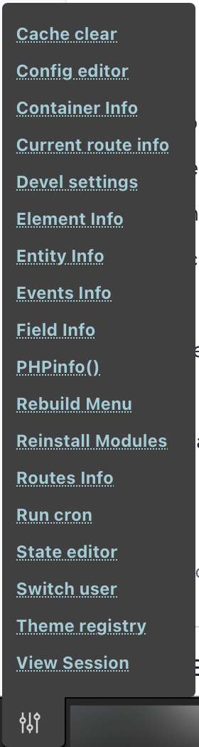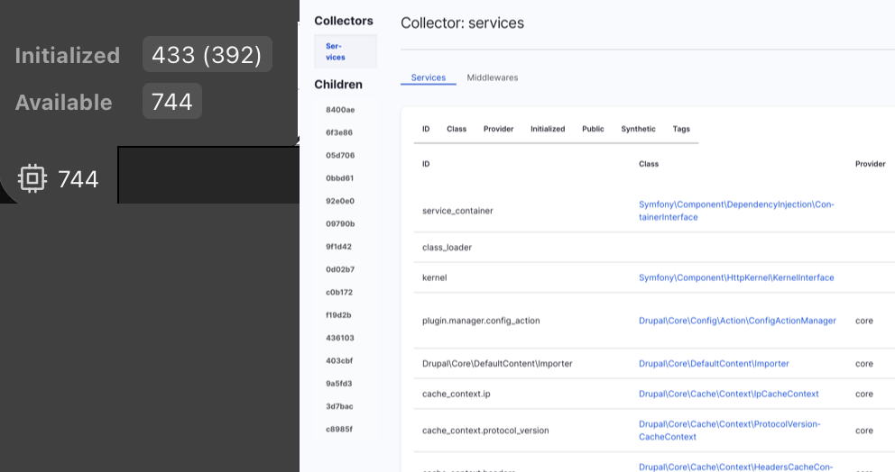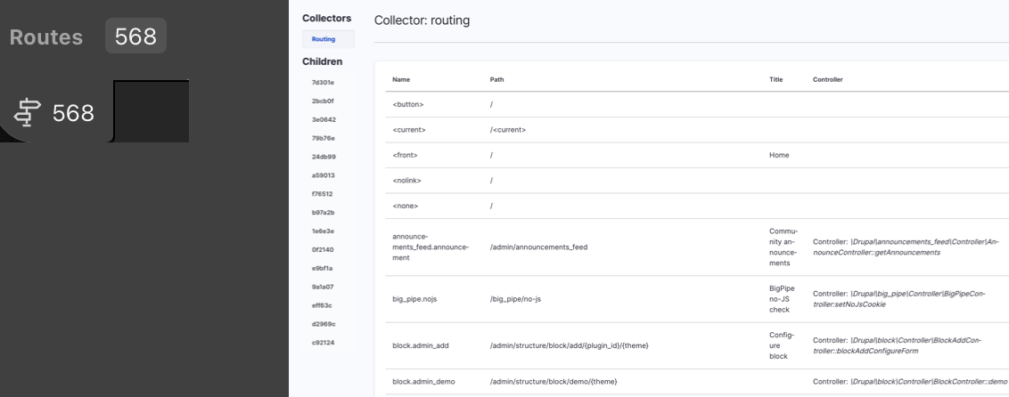 Below are the whole list of available “toolbar items” provided by the WebProfiler module: