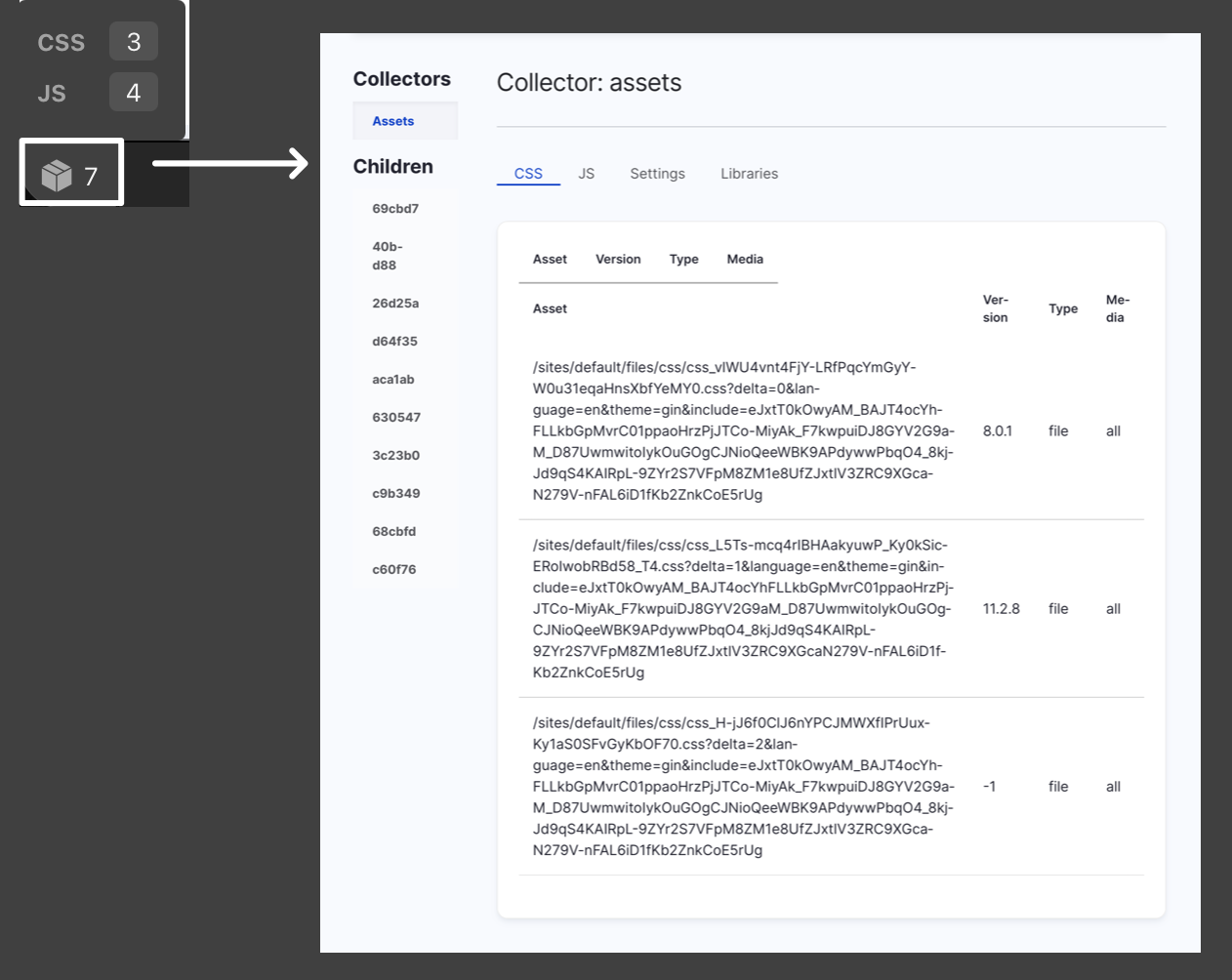 - shows all CSS/JS assets